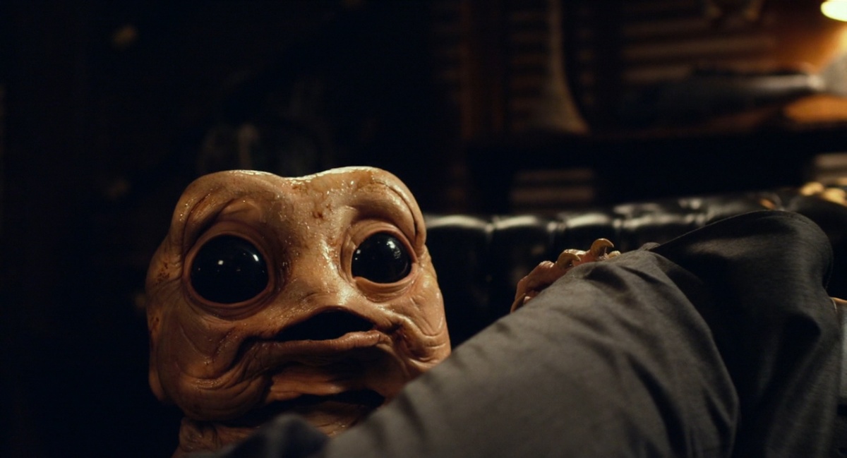 Another treat, and one that requires no thought to appreciate, is the throwback use of 100% practical effects! Milo is a welcome, old-school puppet creature leaving nothing to the imagination. Yes, there’s no CGI here, thank God! The creases in Milo’s shiny, glistening skin make him something that truly could live in your colon. Even though that sounds disgusting again, trust me, it somehow makes him look all the cuter! Could a polyp with arms, legs, and eyes ever elicit more affection? Probably not! (Yes, I’m actually Googling a Milo plush toy right now!)