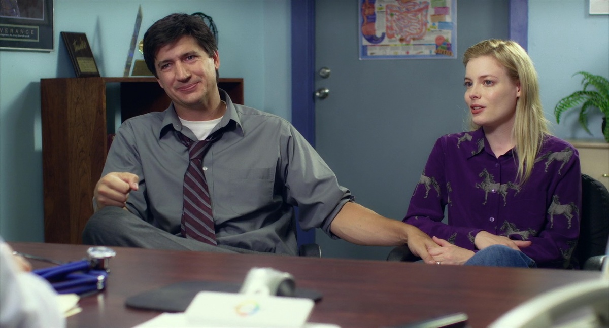 Duncan (Ken Marino) and Sarah (Gillian Jacobs) at the doctor’s office, in Bad Milo!