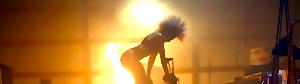 “Out-of-this-world gif images and behind-the-scenes photos are below, sent directly to us by Nicole Alonso.  Yes!  What defines ‘badass’ better than cosmic rays behind Tank with an army-stopping gun at the hip!  “Nothing,” we say!  And who is ‘Mouse’–the femme fatale with cherry-red lips, sunglasses, and pistols smoking?  The ultimate enemy, perhaps–an arch antagonist with a vengeance of her own?  Or, is she Tank’s quiet but deadly ally in post-apocalyptic heroism to save the world?  At SJR, rockets are ready to launch for CRAWL or DIE 2.  With Oklahoma Ward and Nicole Alonso at the helm, it’s sure to be stellar…so let the countdown begin!  T minus 10…9…8…” ~ Chris Rennirt (Editor-in-Chief at Space Jockey Reviews)